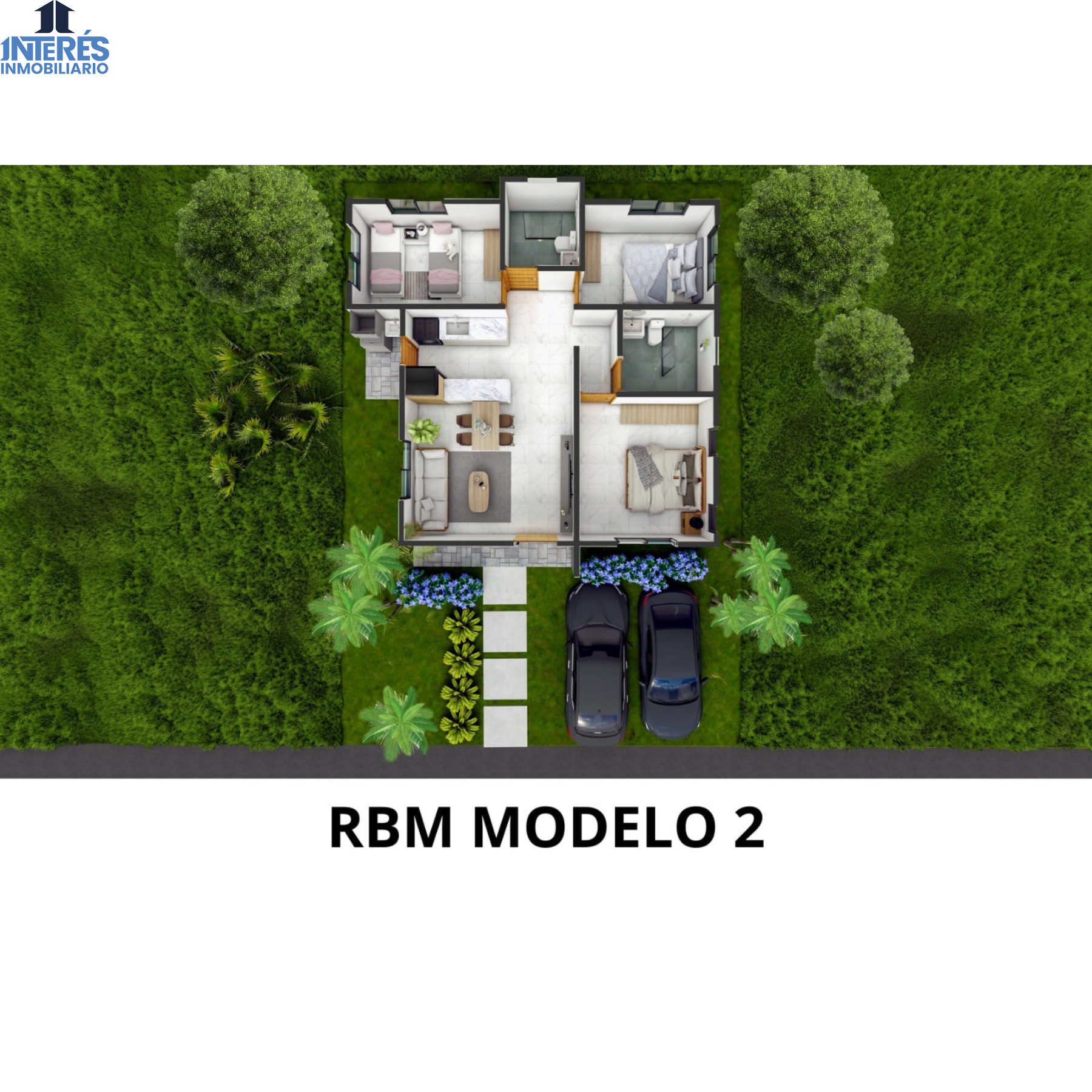 Modelo 2: diseño de un nivel con espacios más amplios, excelente distribución interior y áreas bien definidas, perfecto para quienes valoran amplitud y privacidad.