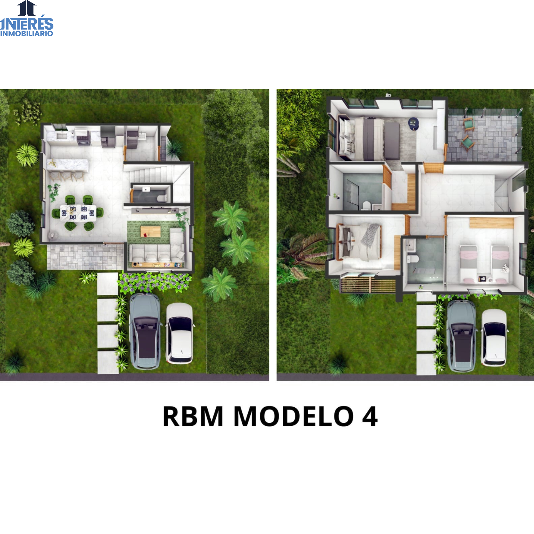 Modelo 4: modelo de dos niveles con distribución moderna, habitaciones amplias, terraza y espacios que permiten mayor confort y proyección a futuro.